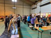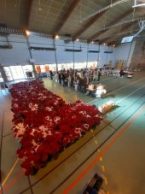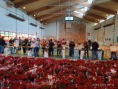 Chaque année de plus en plus de bénévoles nous rejoignent sur le « camp de base » à la halle des orgues (route de Langeac) à Espaly-Saint-Marcel pour épiner les roses, les mettre en cravates à l’aide de chevalets créés spécialement pour l’occasion.