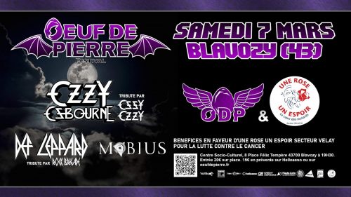 le samedi 7 mars, au centre socio culturel de Blavozy, l’association l’Oeuf de Pierre organise son festival Rock/Hard Rock ; concert en soutien à notre association, comme en 2025.Une douzaine de bénévoles de notre association sera présente en soutien.